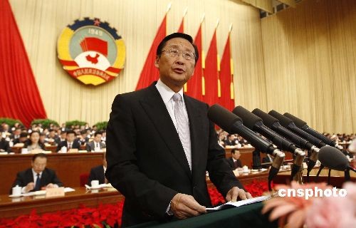3月7日,全國(guó)政協(xié)十一屆二次會(huì)議在北京人民大會(huì)堂舉行第二次全體會(huì)議,全國(guó)政協(xié)常委、香港九龍倉(cāng)集團(tuán)主席吳光正作《應(yīng)對(duì)金融海嘯 擴(kuò)大內(nèi)需 展開改革開放“第二浪”》的發(fā)言。吳光正表示,全球金融海嘯帶來了“!,也帶來了“機(jī)”,中國(guó)要借“機(jī)”積極推動(dòng)改革開放的“第二浪”。中新社發(fā) 盛佳鵬 攝