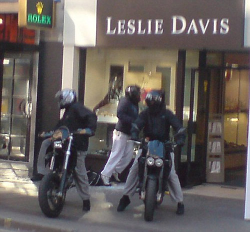 中新網(wǎng)3月8日電 據(jù)英國媒體報(bào)道,6日,一群摩托黨在倫敦最繁華的大街上搶劫了一家珠寶店。這已經(jīng)是該團(tuán)伙第二次做案。實(shí)施搶劫的有4人,都戴著頭盔以隱藏面部,目擊者表示他們看上去不過是學(xué)生年紀(jì)。搶劫時,其中兩人沖進(jìn)店里,用大錘砸碎櫥窗玻璃,拿走里面的手表和珠寶;另外兩人則一直開著引擎,等前者跳上車后即迅速離開。