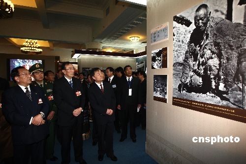 3月8日,參加全國(guó)人大的西藏團(tuán)代表參觀在北京民族宮舉辦的西藏民主改革50年大型展覽。西藏自治區(qū)人大常委會(huì)主任列確(前排左)、西藏自治區(qū)主席向巴平措(前排中)等參觀展覽。中新社發(fā) 杜洋 攝