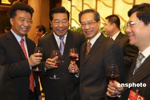 圖:賈慶林向港澳地區(qū)全國(guó)政協(xié)委員敬酒