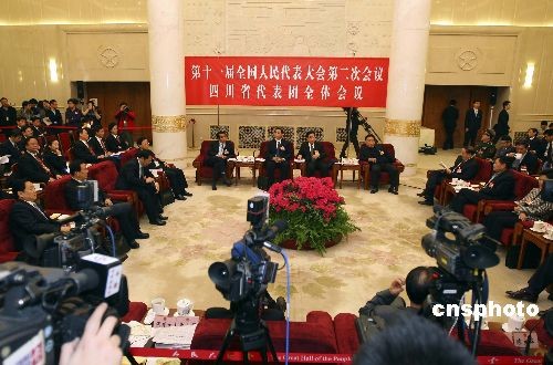 3月11日,出席十一屆全國人大二次會(huì)議的四川代表團(tuán)在北京人民大會(huì)堂舉行全體會(huì)議,向中外媒體開放并接受記者提問。