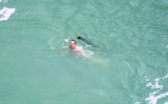 這名男子竟然拒絕接受救援人員的救助,繼續(xù)向中央游去。