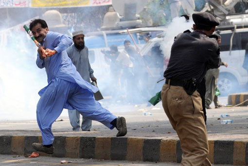 3月15日,巴基斯坦前總理謝里夫的支持者在拉合爾舉行抗議集會時與警察發(fā)生沖突。