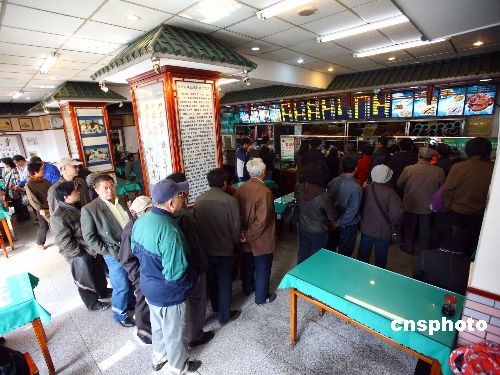 3月20日,迎來24節(jié)氣中的“春分”,意思是說春天過了一半。按照老北京的習(xí)俗,“春分吃豆面糕(驢打滾),避邪祈!。北京著名護(hù)國寺小吃連鎖店為這天的到來準(zhǔn)備了1萬多個驢打滾。圖為在護(hù)國寺小吃店了排隊買驢打滾的民眾。中新社發(fā) 富田 攝