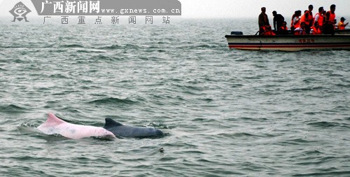傳說海豚是一種十分美麗的動物,欽州三娘灣一帶有中華白海豚,是當(dāng)?shù)貪O民的好朋友。3月29日,記者來到三娘灣,與當(dāng)?shù)貪O民駕船出海,一睹海中“精靈”的美麗。