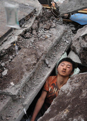 地震發(fā)生后,兩人壓在北川中學(xué)同一堆水泥板下,昨日(4月2日)是獲救后首次相遇