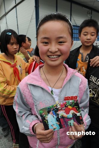 近日,四川德陽什邡市洛水抗震小學(xué)六年級三班小學(xué)生張玉婷手拿去年在5.12地震當(dāng)中自己被救時(shí)的圖片,向同學(xué)們講解自己在地震中的經(jīng)歷和感恩之情。2008年5月12日18時(shí),中國石化石油工程西南分公司火速組成64名職工參加的抗震突擊隊(duì),到德陽什邡市洛水學(xué)校支援搶險(xiǎn)。當(dāng)時(shí)該校200名學(xué)生被壓在教學(xué)樓下,情況十分緊急。搶險(xiǎn)突擊隊(duì)與當(dāng)?shù)厝罕、四川科新公司職工一道,連續(xù)奮戰(zhàn)20余小時(shí),搜救出100余名幸存學(xué)生。中新社發(fā) 胡慶明 攝