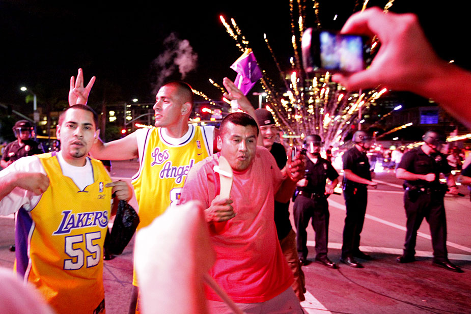 在洛杉磯湖人隊15日奪得本年度NBA總冠軍后,洛杉磯球迷涌上街頭歡慶勝利,但在慶祝過程中偶發(fā)暴力事件,警方逮捕了至少8人。