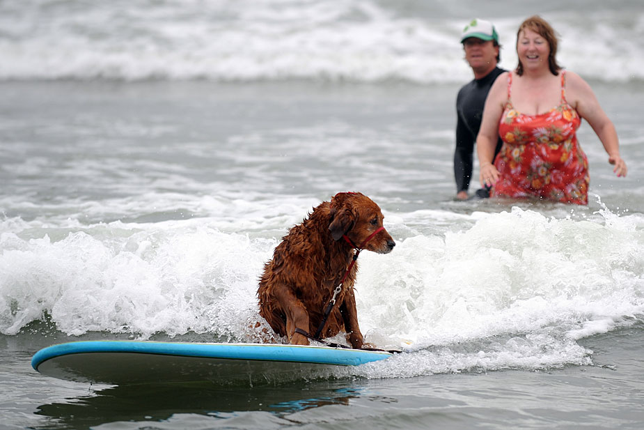 6月20日,在美國加利福尼亞州帝國沙灘舉行了一場小狗沖浪比賽,小狗們表現(xiàn)得十分認真。