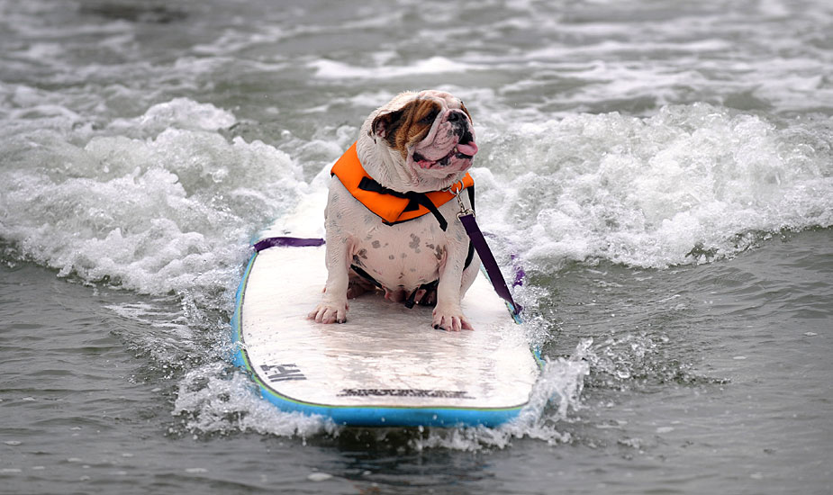 小狗沖浪比賽 讓人忍俊不禁