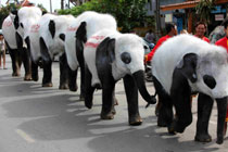 據(jù)英國媒體報(bào)道,近日,泰國因一只剛出生的熊貓陷入熱潮,泰國還準(zhǔn)備向公眾征集熊貓幼崽的名字。幾只大象也“妝扮”成熊貓的模樣,借此吸引人們的關(guān)注。