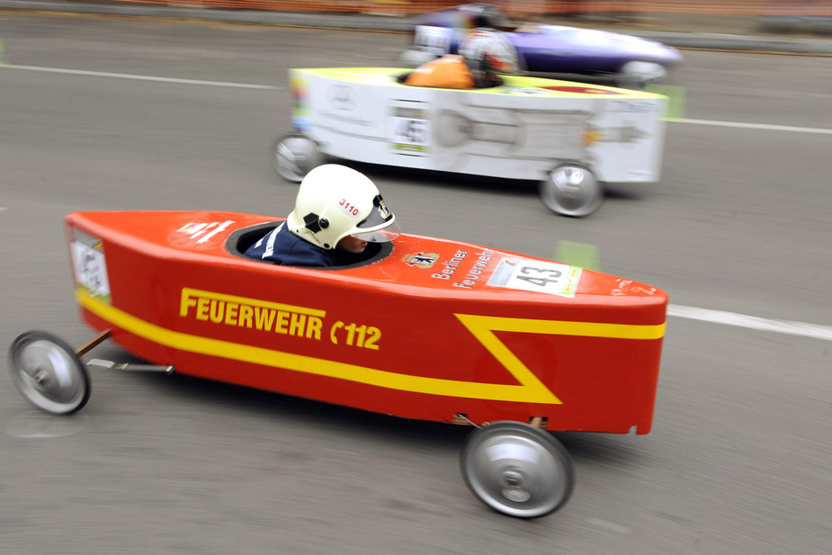 6月28日,德國(guó)柏林的德比郡舉行了第50屆“肥皂盒”競(jìng)速賽車,該賽車沒(méi)有動(dòng)力裝置,參賽者親手打造的“賽車”更使比賽妙趣橫生。