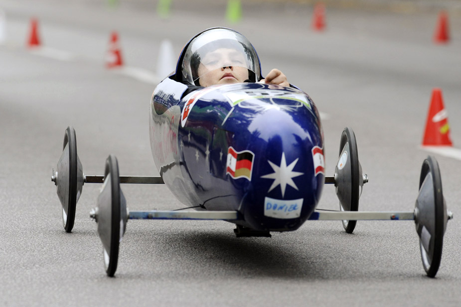 6月28日,德國柏林的德比郡舉行了第50屆“肥皂盒”競速賽車,該賽車沒有動力裝置,參賽者親手打造的“賽車”更使比賽妙趣橫生。