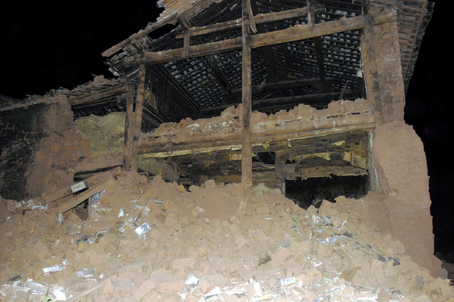 圖為此次地震中受災最為嚴重的官屯鄉(xiāng)官屯村受損較為嚴重的民房。中新社發(fā) 保旭 攝