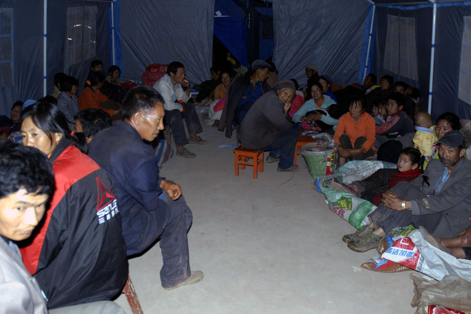 圖為受災最為嚴重的官屯鄉(xiāng)官屯村災民,在當?shù)毓偻托W搭建的臨時安置點渡過震后的第一夜。中新社發(fā) 保旭 攝