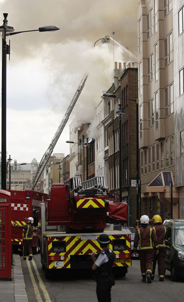英國(guó)倫敦中部蘇豪區(qū)在當(dāng)?shù)貢r(shí)間10日下午2時(shí)左右發(fā)生火警,起火的5層高商業(yè)樓宇被嚴(yán)重焚毀,現(xiàn)場(chǎng)冒出大量濃煙,在倫敦市內(nèi)多處均清楚可見(jiàn)。消防部門派出12輛消防車及60名消防員進(jìn)行灌救。