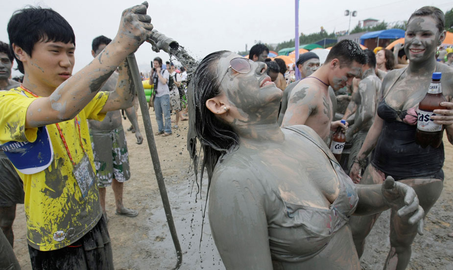 7月11日,韓國(guó)第12屆保寧美容泥漿節(jié)泥巴大戰(zhàn)在大川海灘舉行。