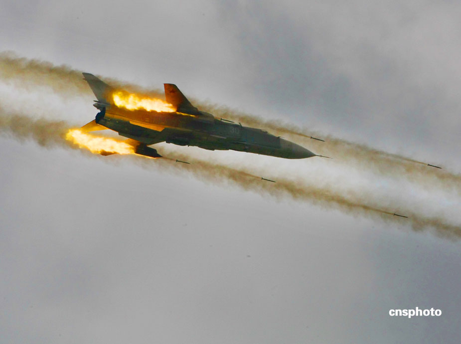 中國、俄羅斯兩軍總參謀長,7月23日上午到沈陽軍區(qū)洮南合同戰(zhàn)術訓練基地,觀看“和平使命2009”聯合反恐軍事演習。雙方以陸軍和空軍為主,中方參演部隊包括1個陸軍戰(zhàn)斗群和1個空軍戰(zhàn)斗群。俄方參演兵力包括1個陸軍加強摩步營、1個空降突擊連和部分空軍兵力,雙方投入兵力兩千多人。中新社發(fā) 宋吉河 攝