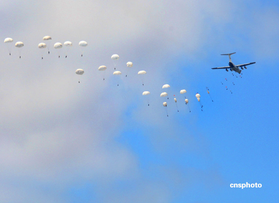中國(guó)、俄羅斯兩軍總參謀長(zhǎng),7月23日上午到沈陽(yáng)軍區(qū)洮南合同戰(zhàn)術(shù)訓(xùn)練基地,觀看“和平使命2009”聯(lián)合反恐軍事演習(xí)。雙方以陸軍和空軍為主,中方參演部隊(duì)包括1個(gè)陸軍戰(zhàn)斗群和1個(gè)空軍戰(zhàn)斗群。俄方參演兵力包括1個(gè)陸軍加強(qiáng)摩步營(yíng)、1個(gè)空降突擊連和部分空軍兵力,雙方投入兵力兩千多人。中新社發(fā) 宋吉河 攝