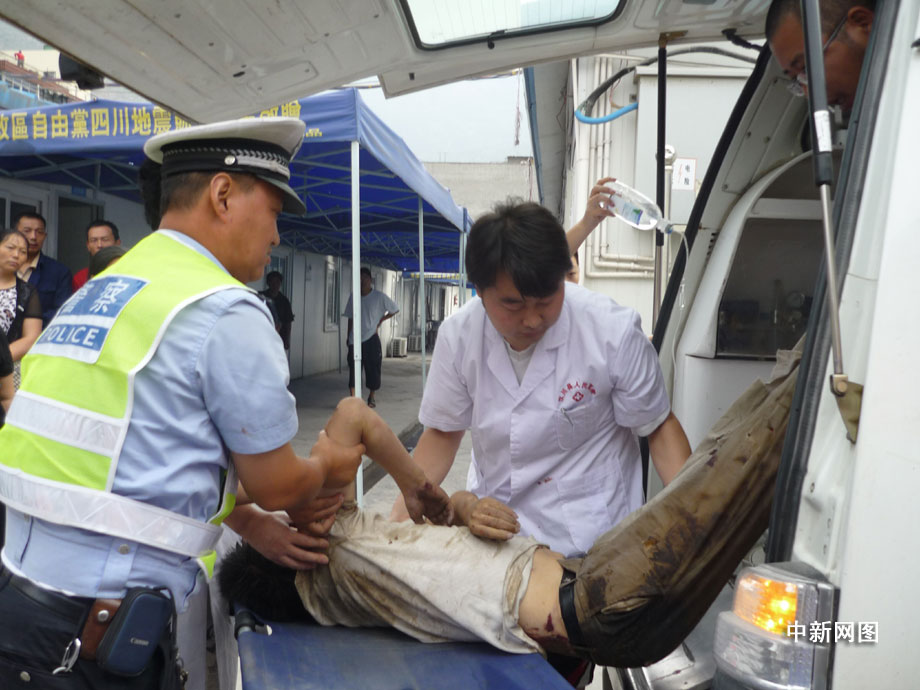 25日凌晨四點(diǎn)鐘左右,汶川縣境內(nèi)國(guó)道二一三線徹底關(guān)大橋被山上飛下來的巨石砸斷,已造成100米的橋面坍塌,7輛汽車受損,12人不同程度受傷,3人死亡,都汶路通行中斷。圖為汶川縣人民醫(yī)院正在積極搶救傷員。 汶新 攝