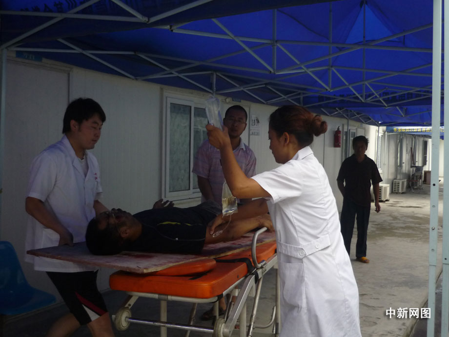 25日凌晨四點鐘左右,汶川縣境內(nèi)國道二一三線徹底關(guān)大橋被山上飛下來的巨石砸斷,已造成100米的橋面坍塌,7輛汽車受損,12人不同程度受傷,3人死亡,都汶路通行中斷。圖為汶川縣人民醫(yī)院正在積極搶救傷員。 汶新 攝