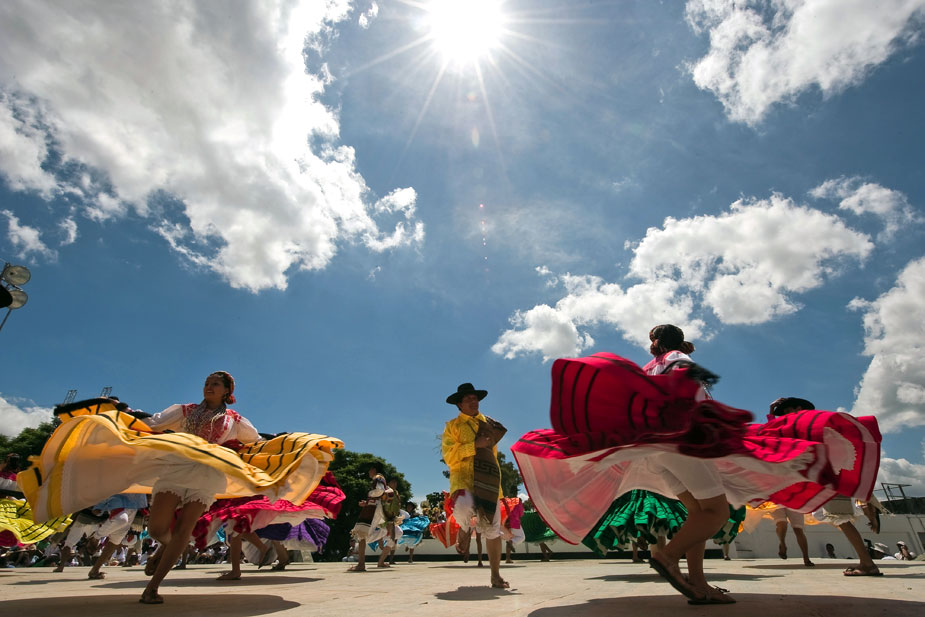 每年7月的最后兩個(gè)星期一是瓦哈卡聞名世界的“蓋拉蓋查節(jié)(Guelaguetza)”,來自瓦哈卡州各地、各具特色的印第安部落推選出具有代表性的舞蹈隊(duì),在瓦哈卡城外的弗爾丁山上載歌載舞,同時(shí)也為前來觀看的世界各地游客獻(xiàn)上本部落的土特產(chǎn)。