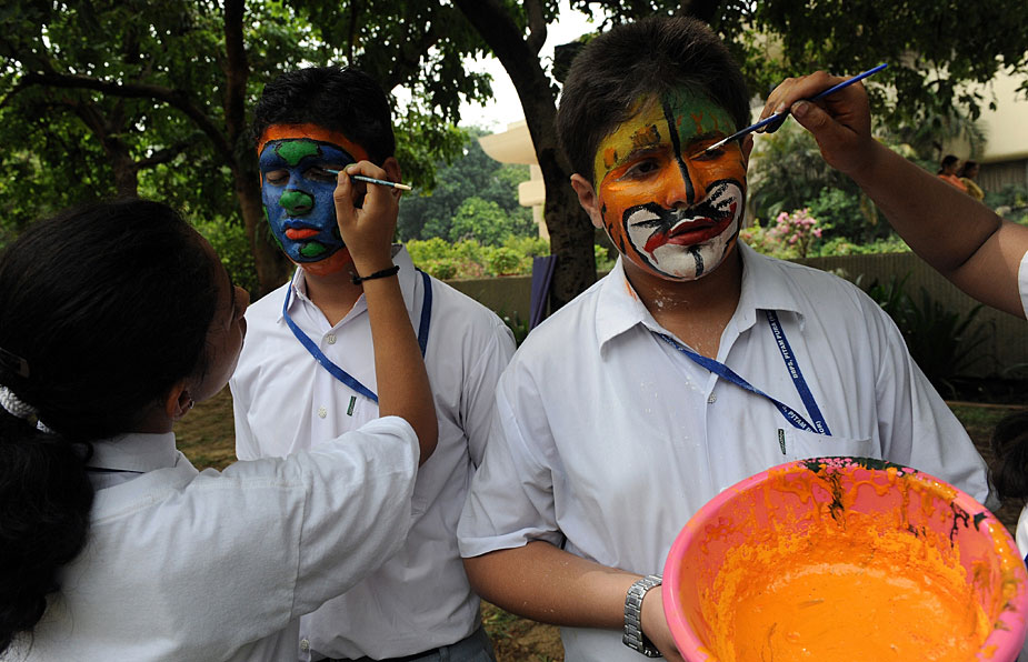 印度學(xué)生畫(huà)臉譜呼吁保護(hù)野生動(dòng)物