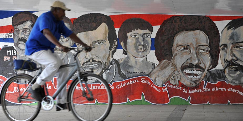 近日,哥倫比亞考卡山谷省卡利市的年輕人用涂料在墻上涂鴉,表達(dá)他們對世界的看法。