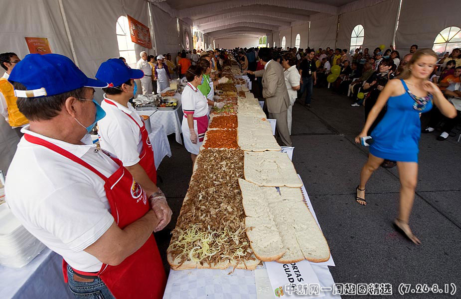 7月31日,在墨西哥首都200多人用肉等各種餡料制成長(zhǎng)達(dá)46米的墨西哥三明治,試圖創(chuàng)造最長(zhǎng)的墨西哥三明治紀(jì)錄。點(diǎn)擊觀看詳細(xì)內(nèi)容