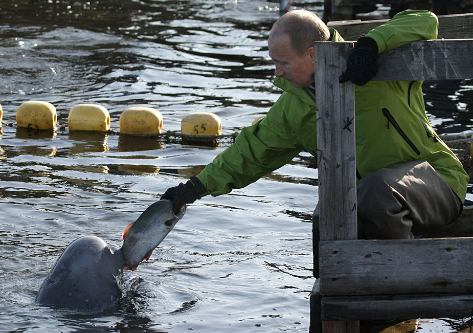 俄羅斯總理普京喂白鯨顯露柔情一面