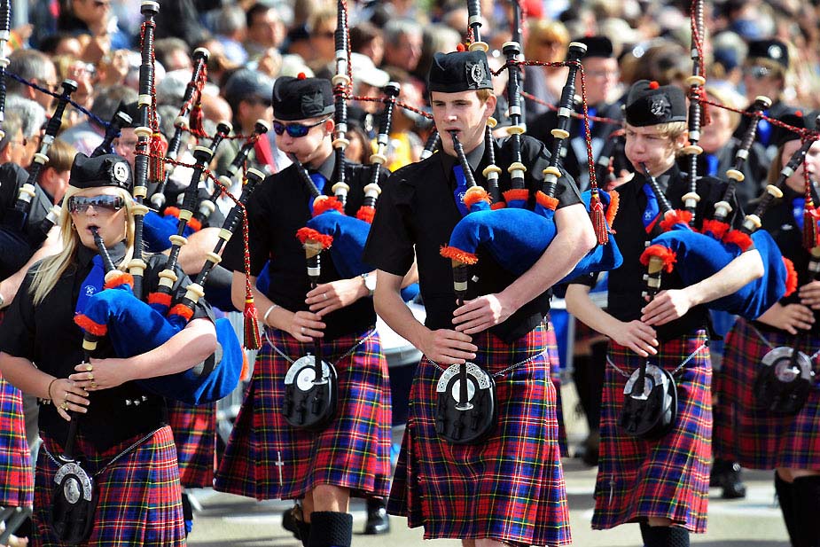 8月2日,蘇格蘭梅西爾風(fēng)笛樂(lè)隊(duì)的藝術(shù)家們?cè)诼謇锇嚎藸柼匚幕?jié)上進(jìn)行表演。