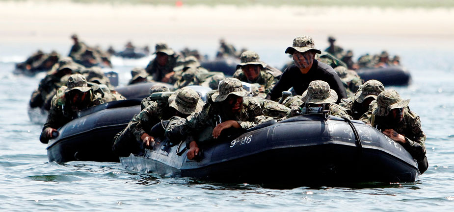 2009年8月5日,韓國特種戰(zhàn)司令部特種作戰(zhàn)分隊在南泰安郡演練海上滲透攻擊。