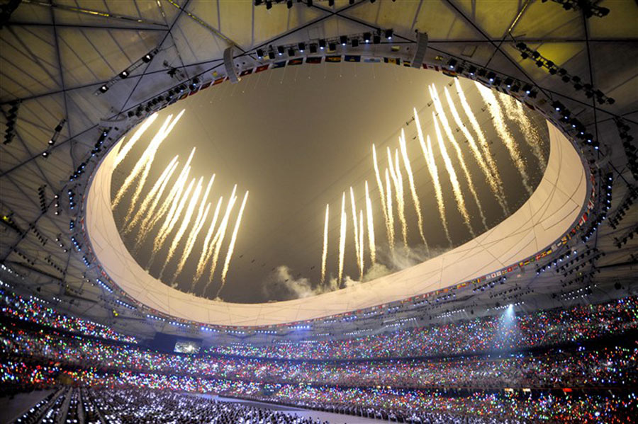 鳥巢夜未眠——從中軸線上的“腳印”煙花,到千缶齊鳴倒數(shù),從夢幻五環(huán)驚艷“鳥巢”,到“夸父逐日”點燃祥云,整個北京奧運開幕式帶給觀眾一波又一波的感嘆。