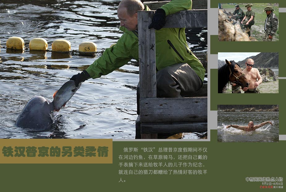 中新網(wǎng)本周熱點人物之普京——這兩天俄羅斯總理普京動作頻頻,再度吸引世界關(guān)注的目光:7月31日,普京“戲”鯨展現(xiàn)溫情一面;8月1日,普京乘微型潛艇至世界最深淡水湖貝加爾湖水面下大約1400米處,探查新能源“可燃冰”;1日,普京還在訪問伊爾庫茨克地區(qū)的“塔爾茨建筑和民族博物館”時體驗打鐵......