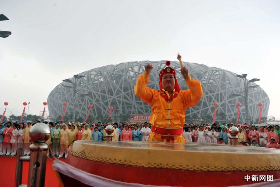 8月8日,全國(guó)首個(gè)“全民健身日”北京主會(huì)場(chǎng)啟動(dòng)儀式上,三萬多群眾進(jìn)行太極拳展示活動(dòng),在世界吉尼斯總部認(rèn)證官員的見證下成功打破世界紀(jì)錄。中新網(wǎng)記者 金碩 攝