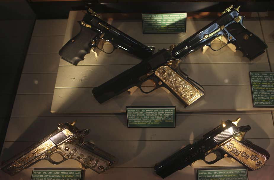 8月6日,在墨西哥首都墨西哥城,數(shù)百件與販毒、緝毒有關(guān)的物品在緝毒博物館里展示。位于墨西哥國防部大樓7層的墨西哥緝毒博物館是拉丁美洲唯一一所由軍隊(duì)設(shè)立的緝毒博物館。