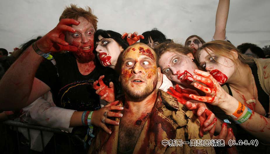 2009年8月6日,英國赫里福德郡Eastnor城堡,人們化裝成“僵尸”出現(xiàn)在大寒音樂節(jié)上。(圖片來源:CFP)點擊觀看詳細內(nèi)容