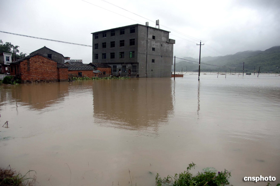 8月9日,第8號(hào)臺(tái)風(fēng)“莫拉克”于16時(shí)20分在福建省霞浦縣沿海登陸,登陸時(shí)臺(tái)風(fēng)中心最大風(fēng)速12級(jí)(33米/秒),中心氣壓970百帕。由于受到“莫拉克”帶來的強(qiáng)降雨影響,霞浦洪山村內(nèi)澇嚴(yán)重。中新社發(fā) 王東明 攝