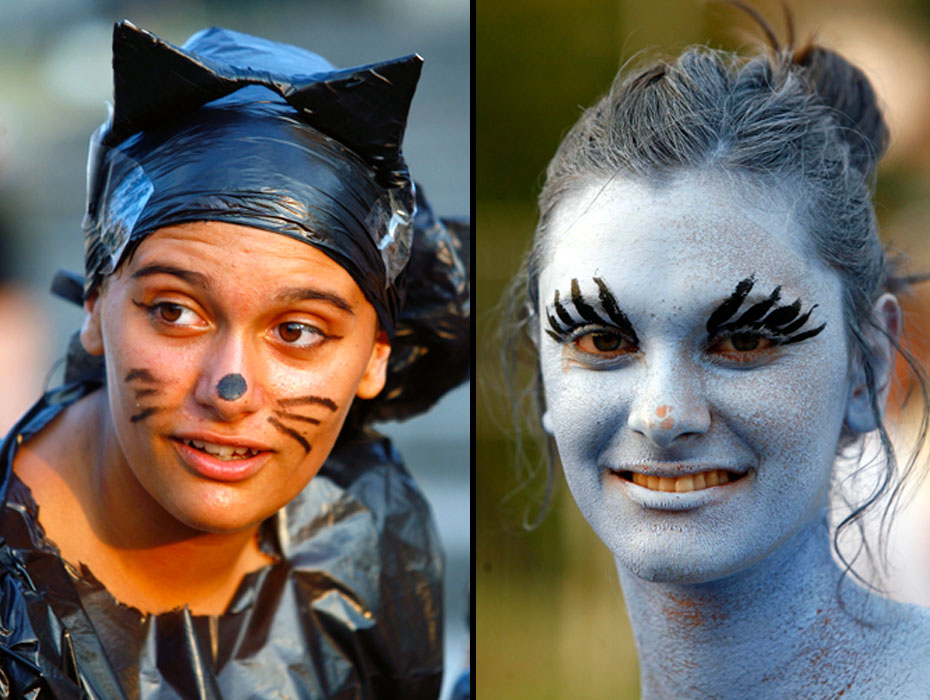 圖為參加狂歡節(jié)的人們?cè)谀樕线M(jìn)行“涂鴉”。