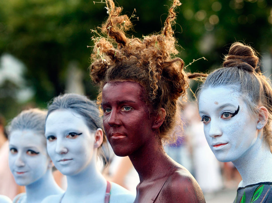 圖為參加狂歡節(jié)的人們在臉上進行“涂鴉”。