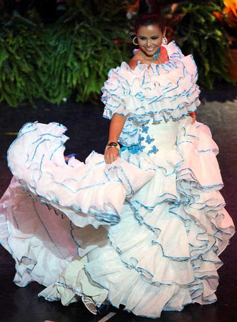 圖為哥斯達(dá)黎加小姐杰西卡秀民族服飾。