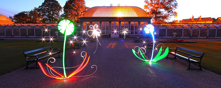 攝影師Michael Bosanko在英國(guó)植物園拍攝的名為“插花藝術(shù)”的光涂鴉照片。