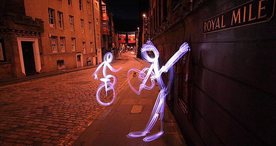 攝影師Michael Bosanko在愛丁堡皇家大道拍攝的名為“幽靈的表演”的光涂鴉照片。