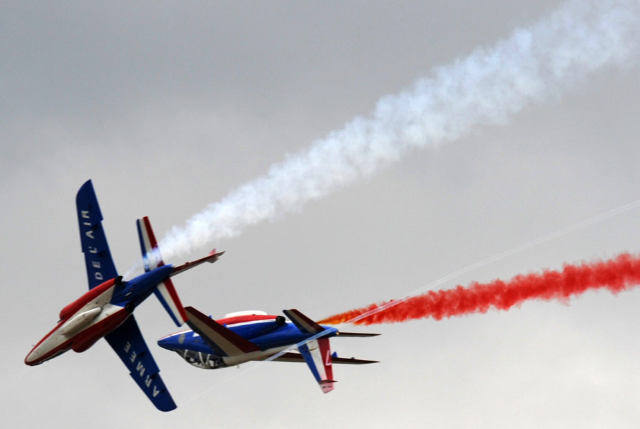 8月21日,在俄羅斯茹科夫斯基市舉行的第九屆國際航空航天展覽會上,法國著名的“法蘭西巡邏兵”飛行表演隊進(jìn)行了精彩的飛行表演。