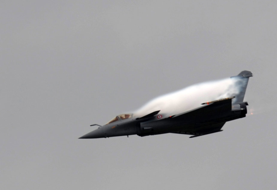 8月21日,在俄羅斯茹科夫斯基市舉行的第九屆國際航空航天展覽會上,法國著名的“法蘭西巡邏兵”飛行表演隊進(jìn)行了精彩的飛行表演。圖為法國的一架陣風(fēng)戰(zhàn)斗機(jī)亮相航展。