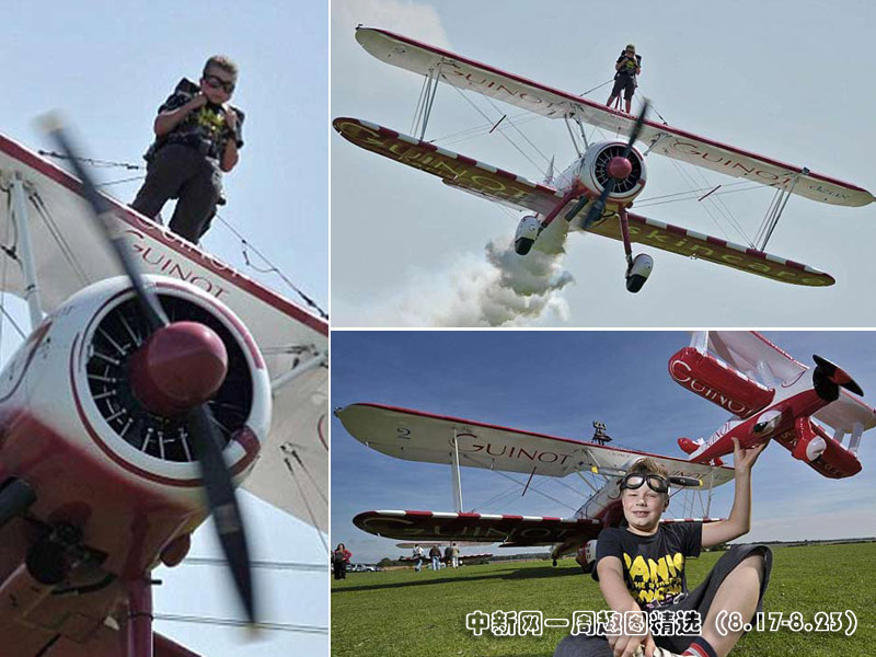 據(jù)英國媒體19日報道,在英國格洛斯特郡的一個飛機場,8歲男孩Tiger Brewer站在他爺爺駕駛的飛機機翼上進行了驚險的空中表演。點擊觀看詳細內容