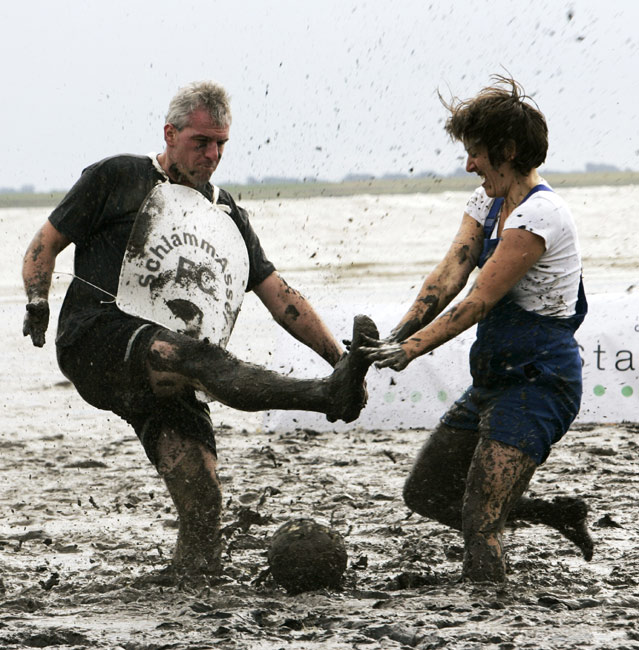 當(dāng)?shù)貢r(shí)間8月30日,德國北部海邊小鎮(zhèn)Brunsbuettel的泥灘上進(jìn)行一場別開生面的泥地足球賽。男女“球員”混合在一起,泥地中盡情撒野,享受著不一樣的樂趣。