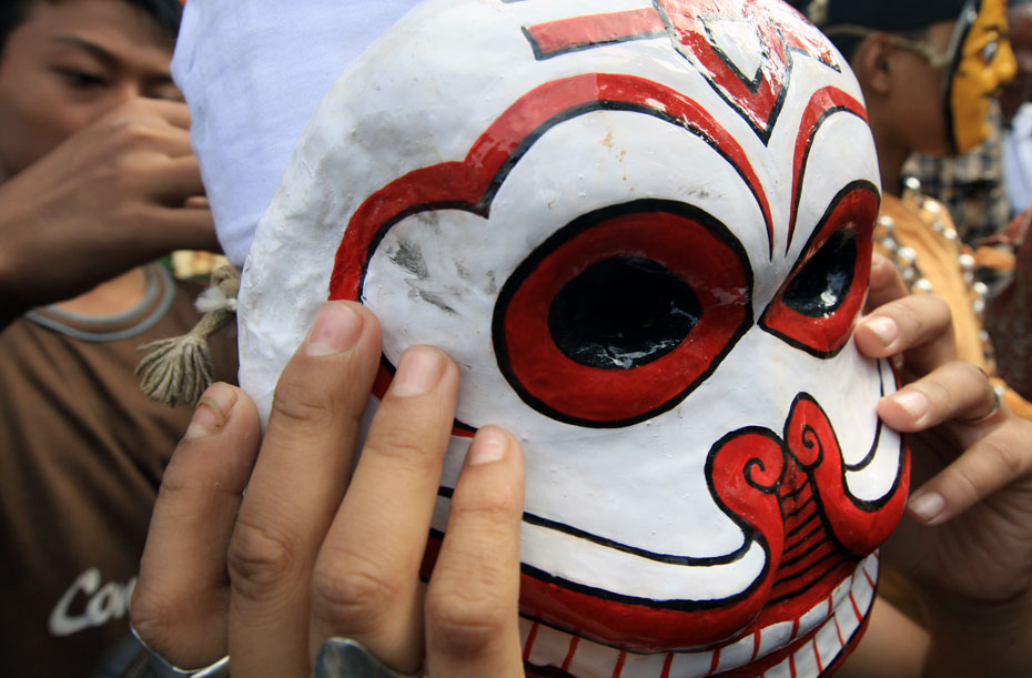 圖為節(jié)日當(dāng)天人們戴上傳統(tǒng)的尼泊爾面具載歌載舞。