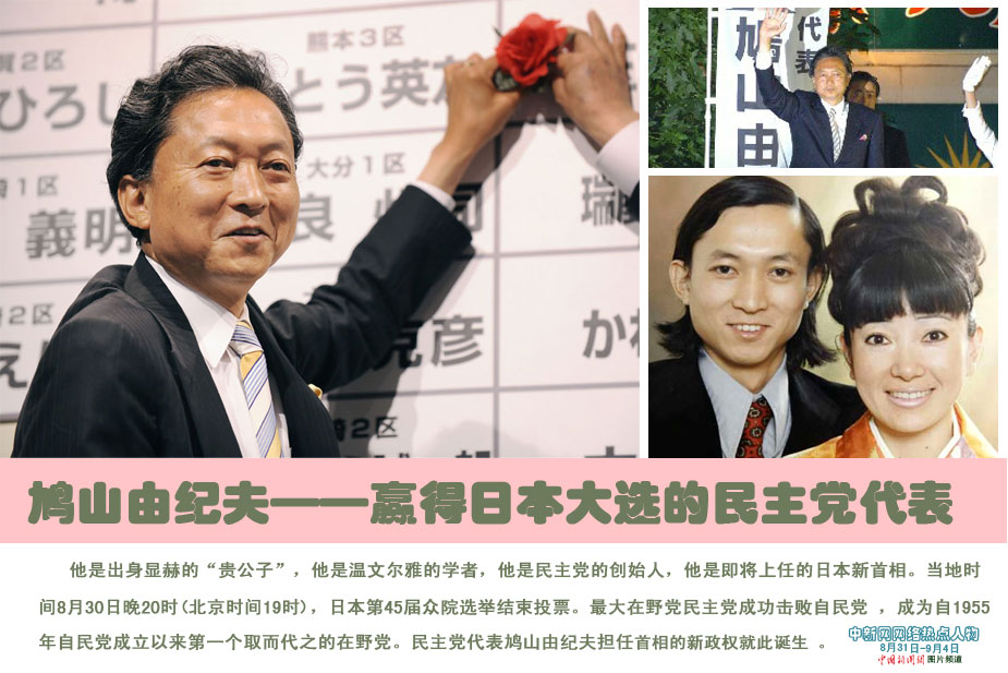 中新網(wǎng)本周熱點(diǎn)人物之——鳩山由紀(jì)夫 他是出身顯赫的“貴公子”,他是溫文爾雅的學(xué)者,他是民主黨的創(chuàng)始人,他是即將上任的日本新首相。 當(dāng)?shù)貢r(shí)間8月30日晚20時(shí)(北京時(shí)間19時(shí)),日本第45屆眾院選舉結(jié)束投票。最大在野黨民主黨成功擊敗自民黨 ,成為自1955年自民黨成立以來(lái)第一個(gè)取而代之的在野黨。民主黨代表鳩山由紀(jì)夫擔(dān)任首相的新政權(quán)就此誕生 。來(lái)源:中國(guó)新聞網(wǎng)