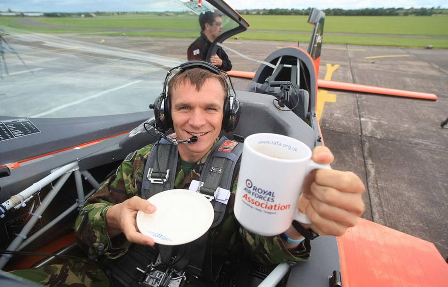 3日,英軍一名現(xiàn)役軍人進(jìn)行特殊的飛行表演——他邊喝茶,邊駕駛飛機(jī)在空中翻了14個(gè)筋斗。此舉意在為英國(guó)皇家空軍協(xié)會(huì)的一個(gè)基金會(huì)籌款。圖片來(lái)源:中國(guó)網(wǎng)